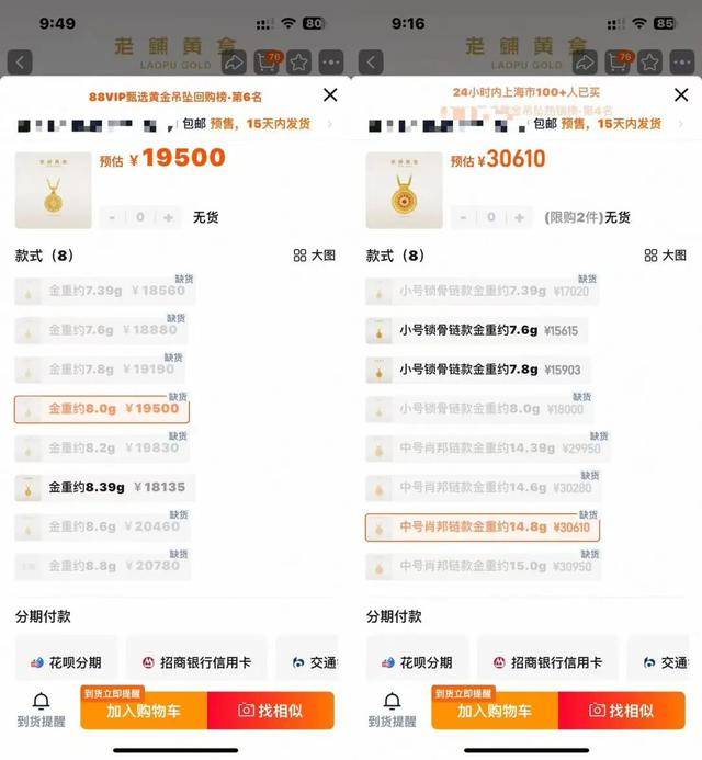 10月26日,老铺黄金此前宣布的年内第三次调价正式兑现。相较今年8月,产品有5%—13%的涨幅,本次老铺黄金多款产品涨幅超20%,加价力度不小。
